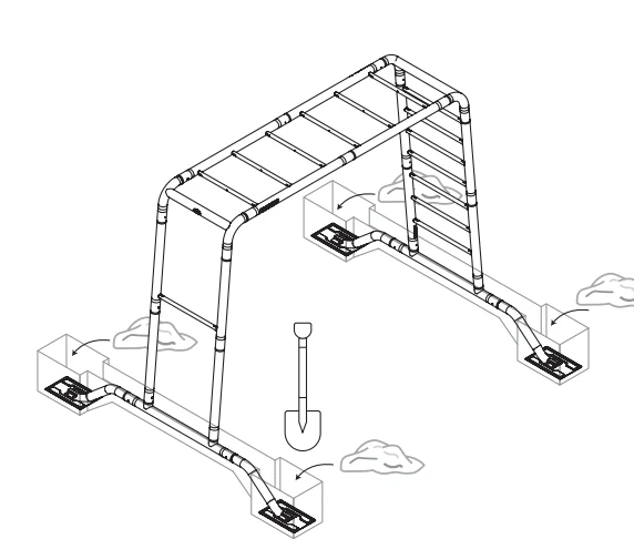 Die Basis dieses Konzepts ist der starke und robuste Rahmen. Er hat ein modernes und Minimalistisches Design und ist mit einer patentierten Röhrenverbindung ausgestattet. Das Ganze ist stabil in den Boden eingelassen und bildet so eine solide Basis für diverse Anwendungen. Entscheide selbst, ob du lieber die 380 cm breite Large-Variante oder die 285 cm breite Medium-Variante nimmst. Tiefe und Höhe der beiden Rahmen sind gleich. Nämlich 100 cm tief und 245 cm hoch. Für die Seiten des Rahmens kannst du entweder eine Treppe oder eine Reckstange wählen, oder auch eine Kombination aus beiden.