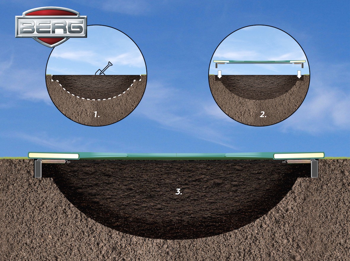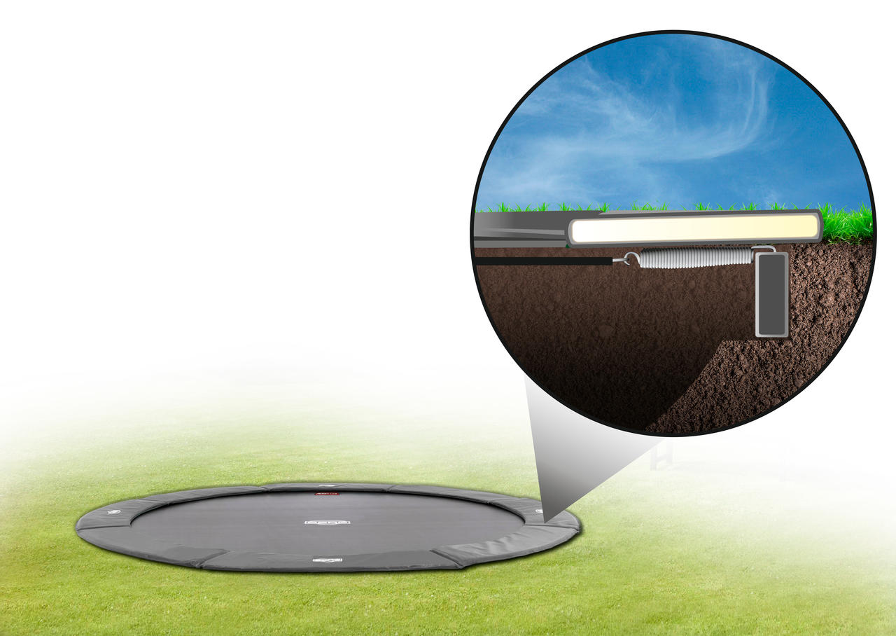 Mit den TwinSpring-Gold-Federn bietet das BERG FlatGround Champion ultimativen Springkomfort. Die TwinSpring-Gold-Federn sind V-förmig angeordnet. So ist Platz für extra lange federn mit mehr Windungen. Das bietet noch höheren Springkomfort.