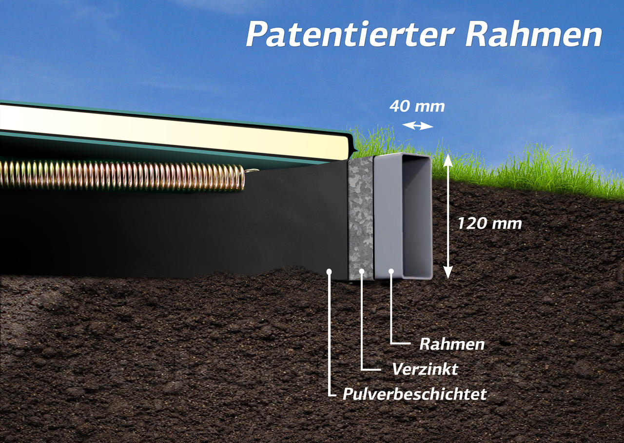 - Schließt ebenerdig mit Rasenkante ab